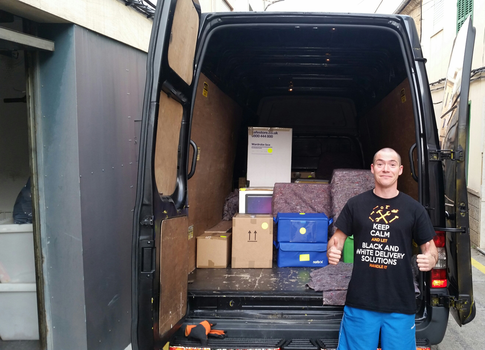 He left us this fantastic testimonial on our Facebook page: “Huge thanks to Peter who arrived in the Balearics this morning with my office equipment & personal belongings, everything went as smooth as planned, and I couldn’t recommend him or Black & White Delivery Solutions higher! So much care taken and a lovely guy to work with, thanks for making the international relocation less stressful. Cheers!”